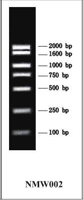 三、Marker 片段大小(bp ): 2000,1600,1000,750,500,250,100