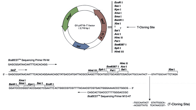 GV pXT19-T Vector 是一種高效克隆 PCR 產(chǎn)物(TA Cloning)的專用載體,由 pUC19 載體改造而成。