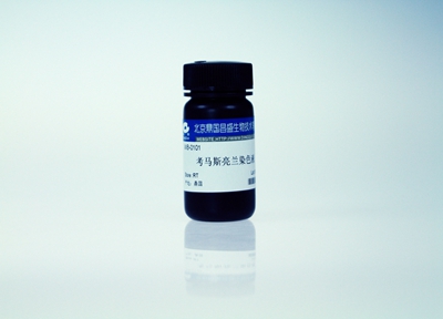 考馬斯亮藍(lán)快速染色液(Commassie Blue Fast Staining Solution)是以考馬斯亮藍(lán) R-250 為染料配制而成的染色液,可用于 SDS-PAGE 或非變性 PAGE 蛋白電泳膠的快速染色,或Western 轉(zhuǎn)膜后 PAGE 膠上殘余蛋白的檢測。考馬斯亮藍(lán)染色液采取新配方,超薄膠只需染色 10 分鐘,就可以顯示出清晰的蛋白電泳條帶。